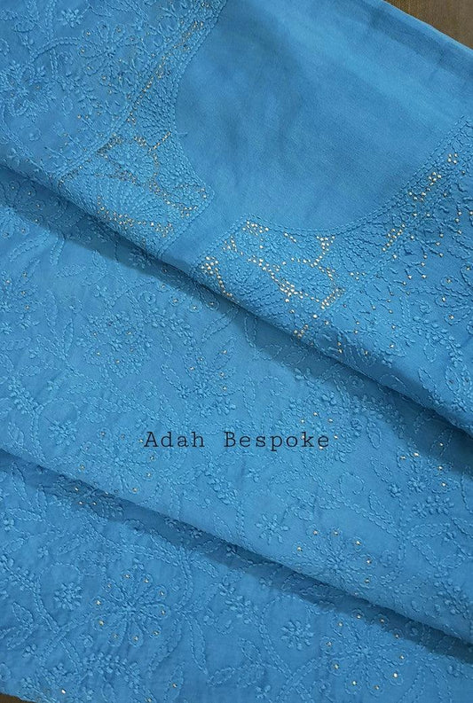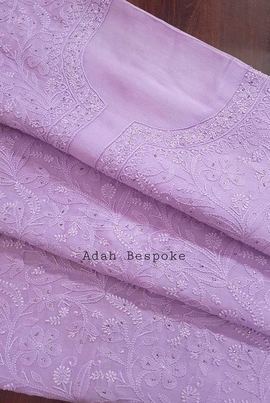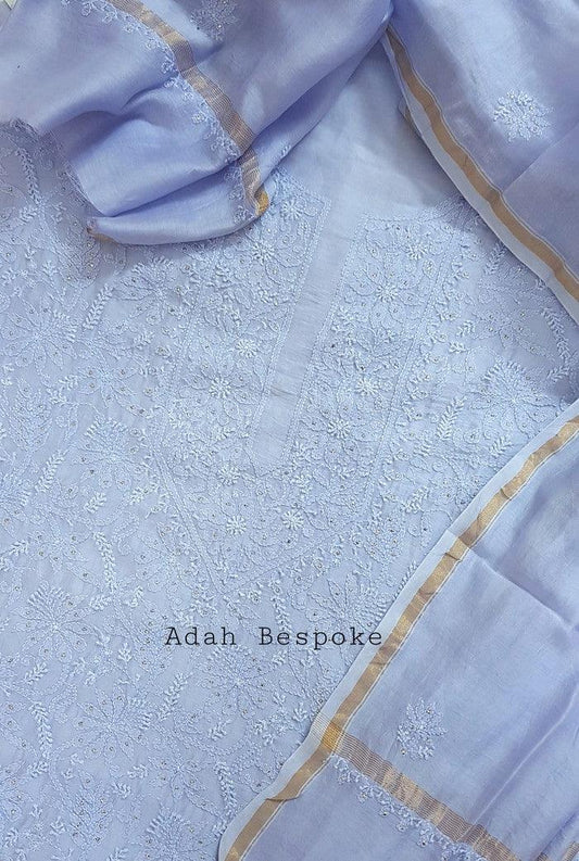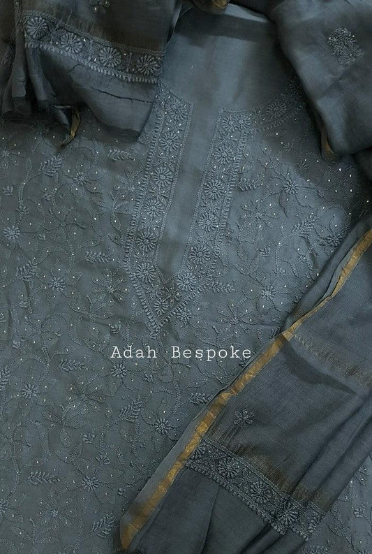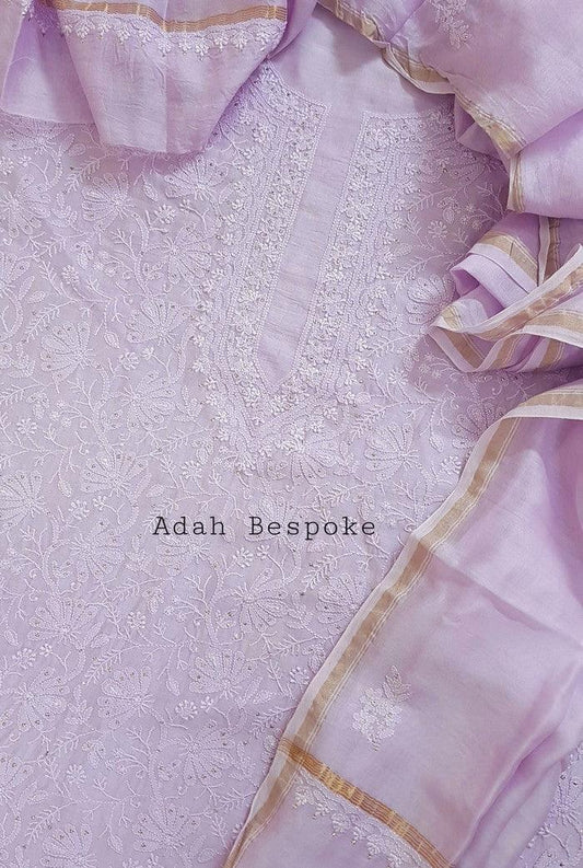 Hand embroidered Chikankari Chanderi suits are what we call as affordable luxury. Chanderi silk is a traditional ethnic fabric characterized by its lightweight, sheer texture and fine luxurious feel.
