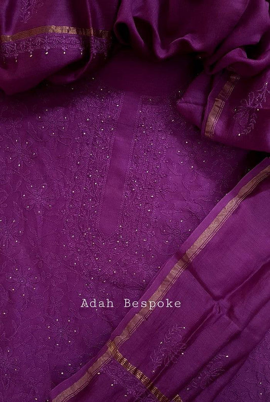 Chikankari Chanderi Designer Suit ( Zardozi Work )