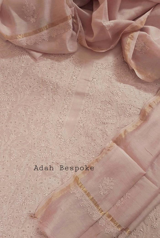 Chikankari Chanderi Designer Suit ( Pearl Work )