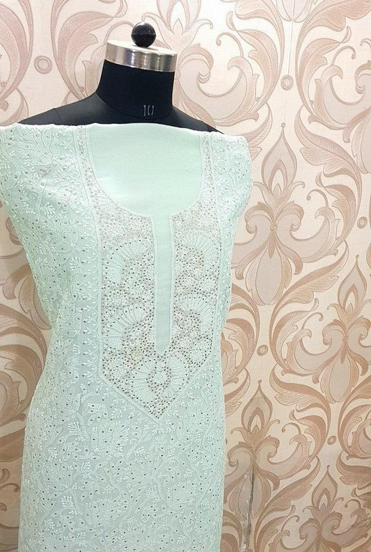 Hand embroidered Chikankari Chanderi suits are what we call as affordable luxury. Chanderi silk is a traditional ethnic fabric characterized by its lightweight, sheer texture and fine luxurious feel.