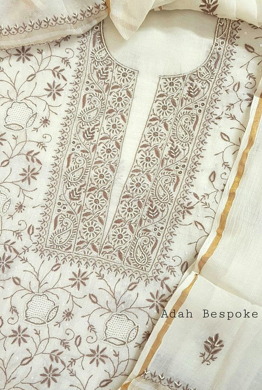 Chikankari Mul Chanderi Suit ( Pearl n Sequins )