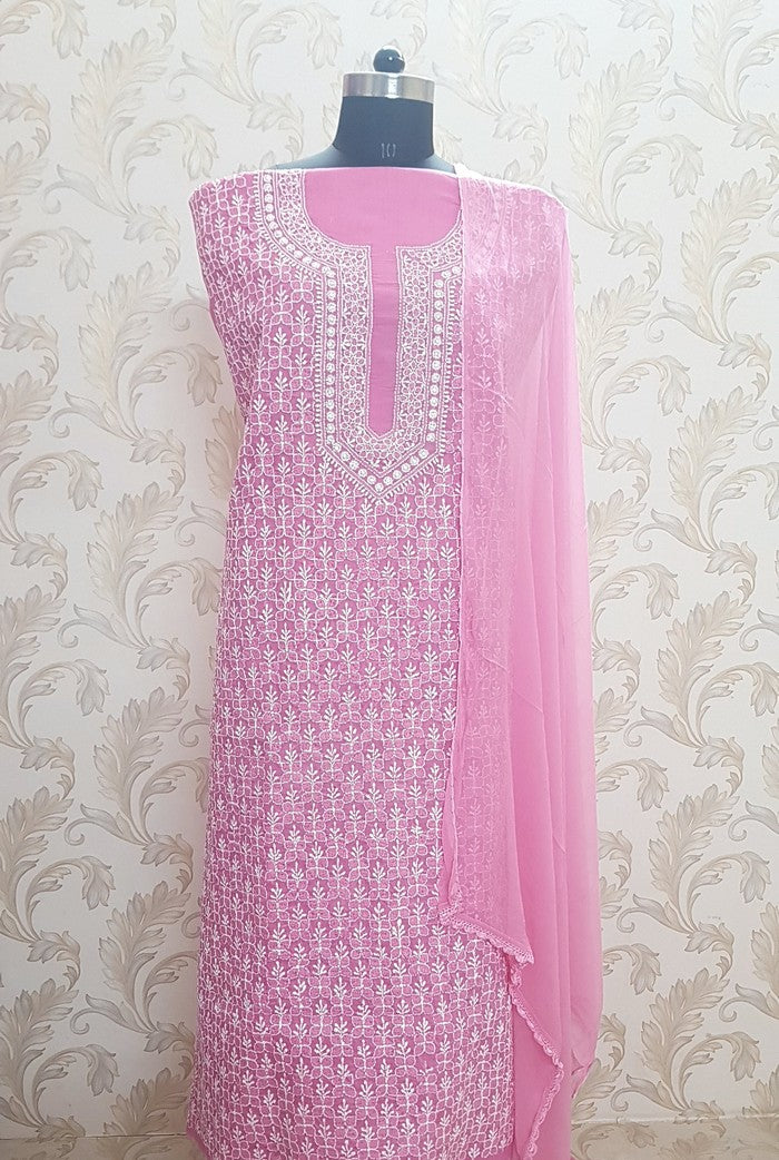 For all the natural fabric lovers, we bring to you an exquisite product in pure cotton fabric. These full Chikankari Cotton Suits are adorned with intricate hand embroidered Chikankari. Sleeves are beautifully patterned. Back and bottom comes with motifs. Dupatta in pure chiffon is shaded n comes with a crochet border.