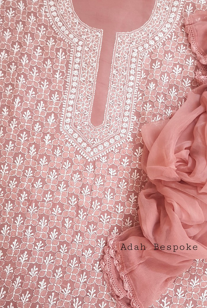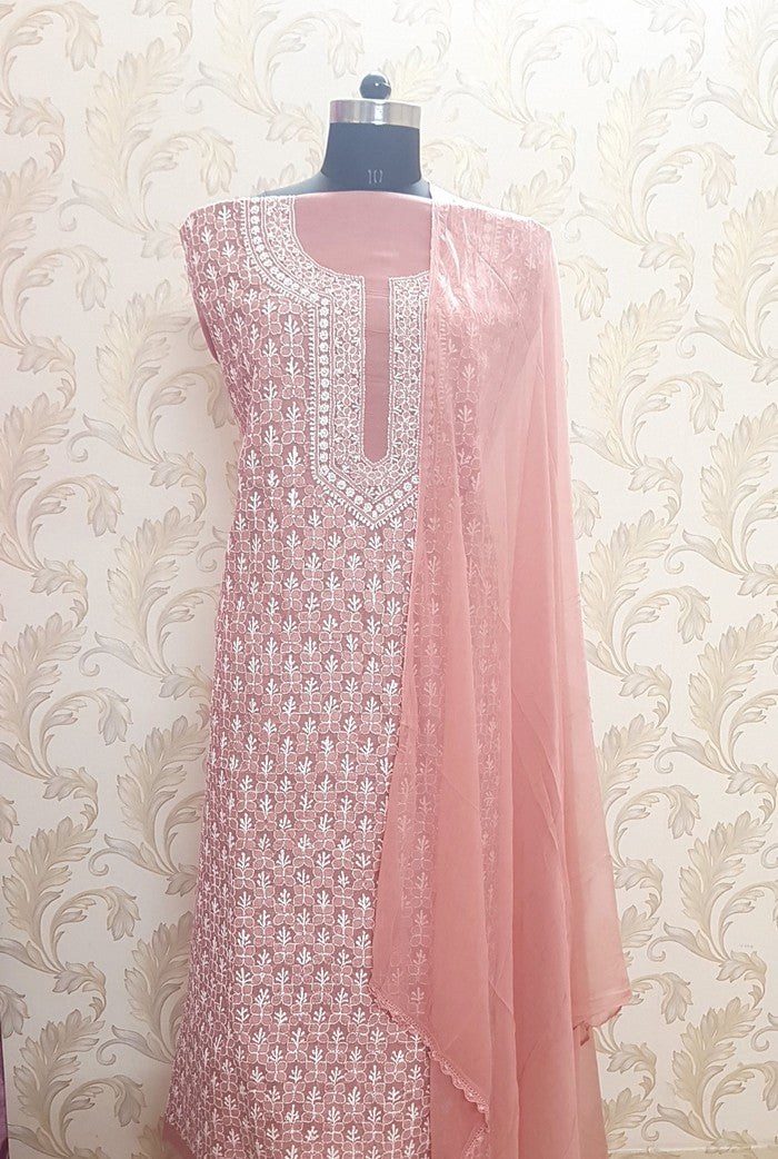 For all the natural fabric lovers, we bring to you an exquisite product in pure cotton fabric. These full Chikankari Cotton Suits are adorned with intricate hand embroidered Chikankari. Sleeves are beautifully patterned. Back and bottom comes with motifs. Dupatta in pure chiffon is shaded n comes with a crochet border.