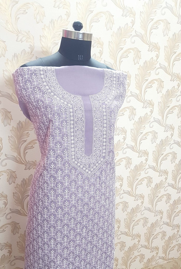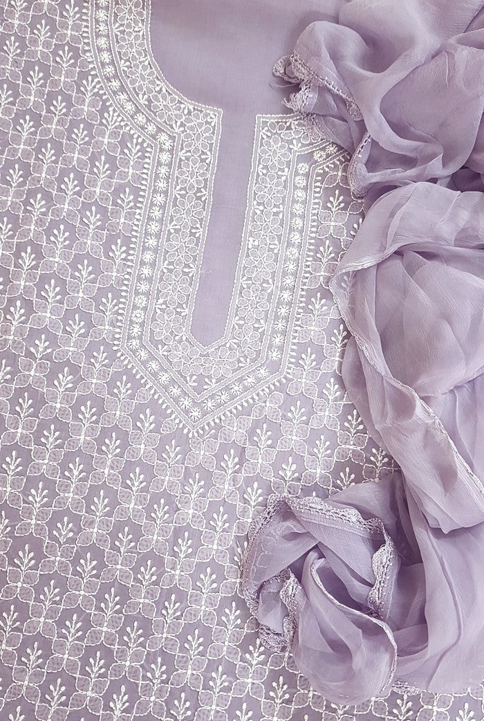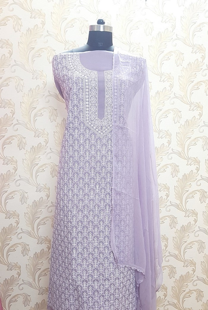 For all the natural fabric lovers, we bring to you an exquisite product in pure cotton fabric. These full Chikankari Cotton Suits are adorned with intricate hand embroidered Chikankari. Sleeves are beautifully patterned. Back and bottom comes with motifs. Dupatta in pure chiffon is shaded n comes with a crochet border.