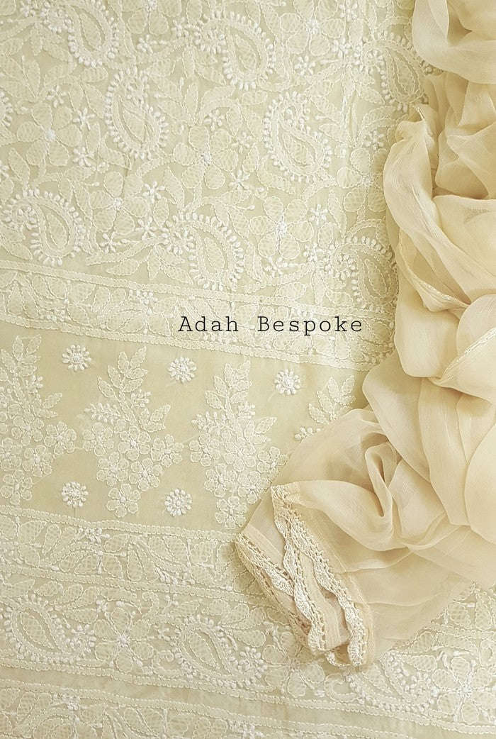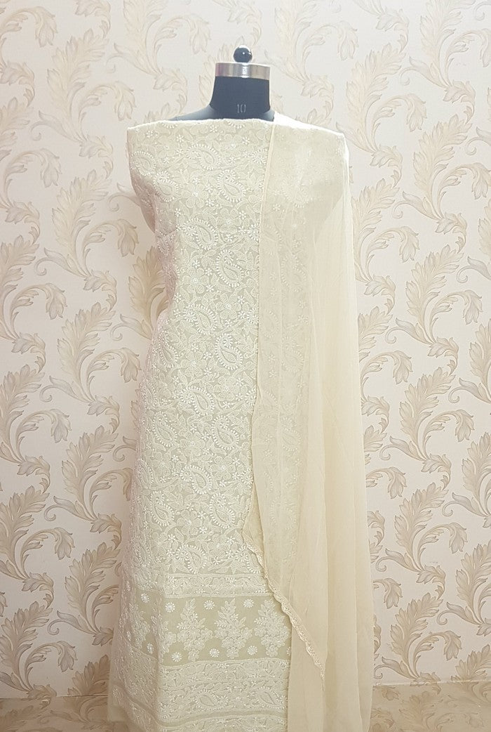 For all the natural fabric lovers, we bring to you an exquisite product in pure cotton fabric. These full Chikankari Cotton Suits are adorned with intricate hand embroidered Chikankari. Sleeves are beautifully patterned. Back and bottom comes with motifs. Dupatta in pure chiffon is shaded n comes with a crochet border.