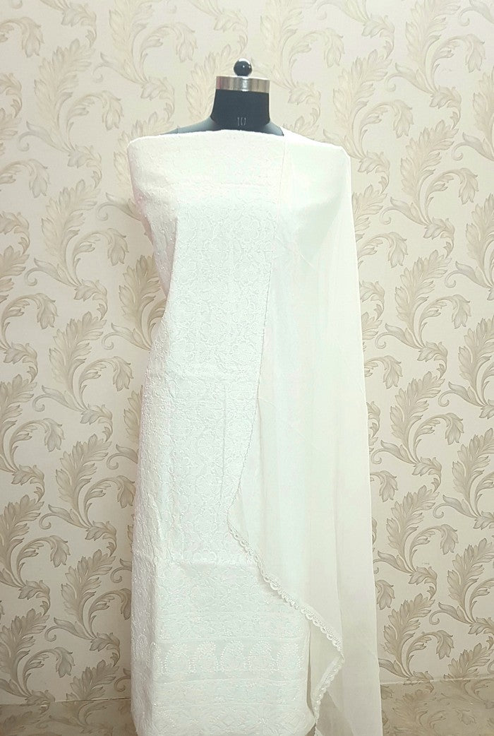 For all the natural fabric lovers, we bring to you an exquisite product in pure cotton fabric. These full Chikankari Cotton Suits are adorned with intricate hand embroidered Chikankari. Sleeves are beautifully patterned. Back and bottom comes with motifs. Dupatta in pure chiffon is shaded n comes with a crochet border.